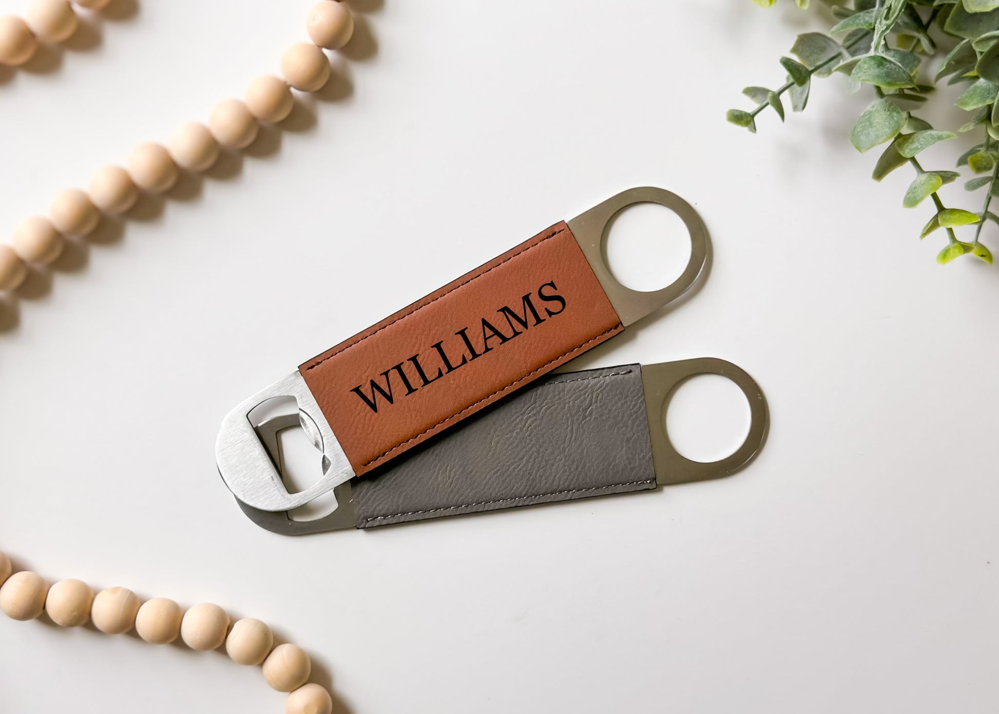 Crafted with a rich leatherette finish and durable stainless steel, this isn't just any bottle opener – it's a statement piece they'll be proud to use.