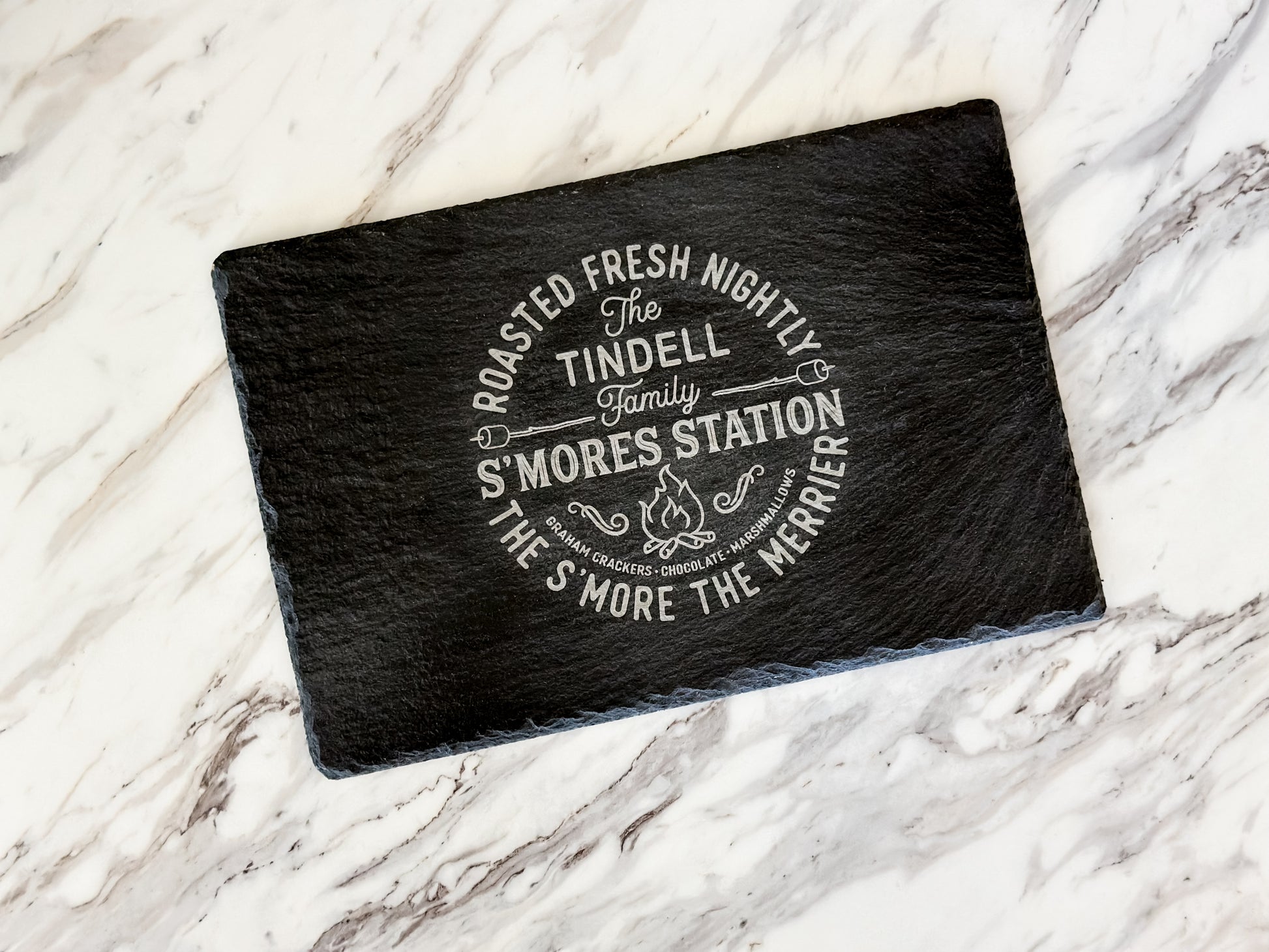 Enjoy your favorite fireside treats with this beautiful slate s’mores board that is sure to wow the crowd, making every outdoor gathering both memorable and delicious!